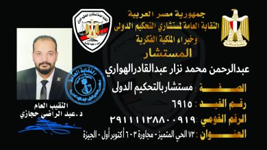 النقابة العامة لمستشاري التحكيم الدولي وخبراء الملكية الفكرية ورفع مستوي التنمية المستدامة بالتحكيم