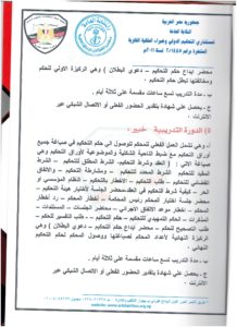 وبناء علي رفع مستوي الاعصاء في العمل بالتحكيم الوطني والدولي ، وربط التدرج للبحث في التخصص خلال العام 2020 وكل دورة تجديد يطلب بحث متنوع في ذات التخصص ، وبالاشارة للاعضاء المقيدين دون تقديم ابحاث خلال عام 2020 سوف تحال ملفاتهم للفحص لاصدار قرار في شأن عضويته .